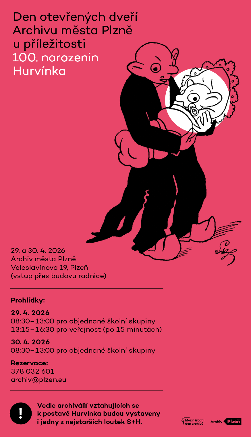 Prohlídky pro školní skupiny budou po oba dny probíhat od 8:30 do 13:00 hod., a to vždy po 15 minutách (vstup ze dvora přes budovu radnice). Na akci je nutné se předem objednat na tel. 378 032 601 nebo e-mailem na archiv@plzen.eu.